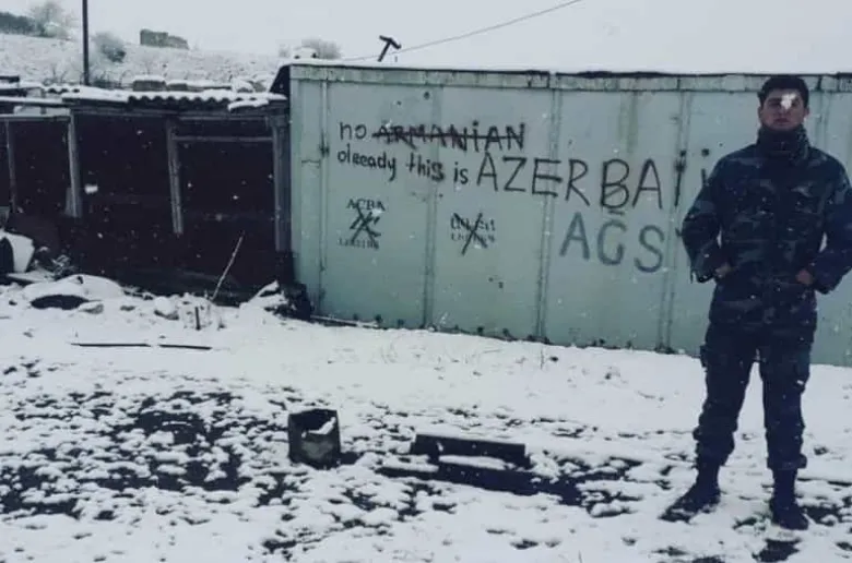 Համացանցում տարածվել է լուսանկար, որն արել են ադրբեջանցի զինվորները՝ Լեռնային Ղարաբաղում: Դրանում երևում է, որ նրանք գրառում են կատարել Արցախի` իրենց վերահսկողության տակ անցած բնակավայրերից մեկի պատի վրա: Լատինատառ գրառումն ասում է. «Ոչ մի ՀԱՅ. սա արդեն Ադրբեջանն է»: Միևնույն ժամանակ, «հայ» բառը գրված է տառասխալներով և ջնջված է: