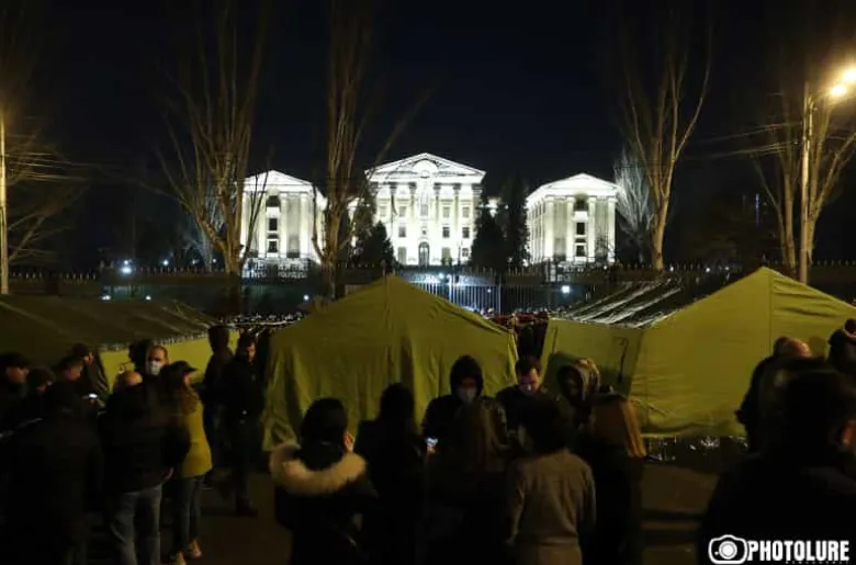 Ընդդիմադիրները գիշերել են ԱԺ-ի դարպասների մոտ․ Բաղրամյան պողոտան շարունակում է փակ մնալ (տեսանյութ)