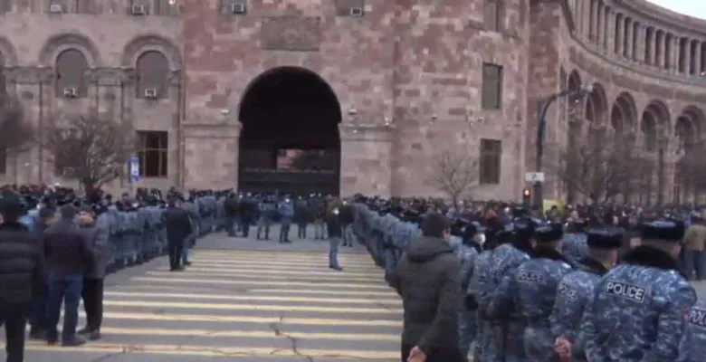 Ոստիկանները պատ են կազմել, որպեսզի Նիկոլ Փաշինյանը դուրս գա կառավարության շենքից: