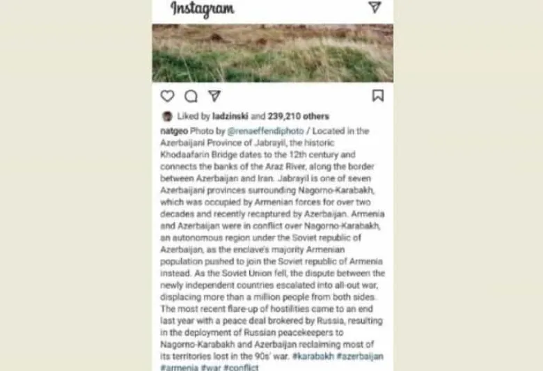 Mediaport-ը գրում է․ Հեղինակավոր National Geographic հանդեսն իր ինստագրամյան էջում հրապարակել է Ադրբեջանի կողմից բռնազավթված Խոդաֆերինի կամրջի նկարը և կից գրառման մեջ նշել.