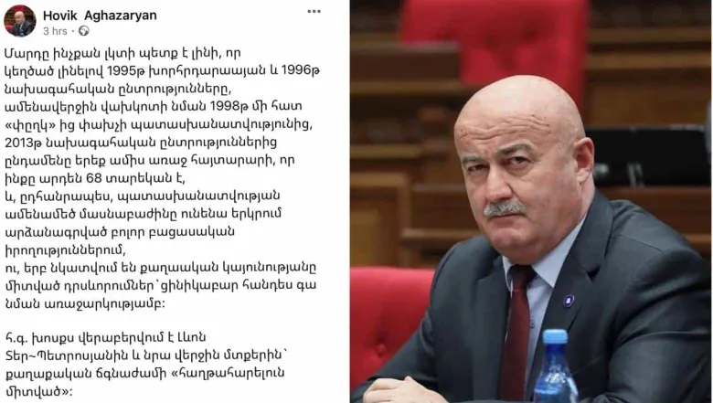 Հովիկ Աղազարյանը «լկտի» և «ցինիկ» է անվանել Լևոն Տեր-Պետրոսյանին