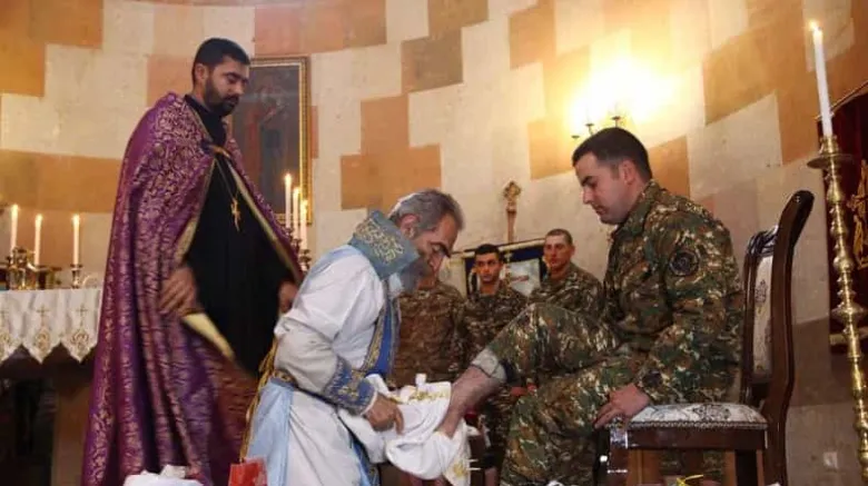 Ավագ հինգշաբթի օրը Տերը գալիս է Վերնատուն, որը Եկեղեցու օրինակն է, այնտեղ ուտում զատկական գառը, լվանում է Իր աշակերտների ոտքերը, նրանց հաղորդ դարձնում Իր Մարմնին ու Արյանը՝ այսպիսով հաստատելով Ս. Հաղորդության խորհուրդը, իսկ գիշերը ելնում է Ձիթենյաց լեռ, Իր աստվածային գլուխը գետին խոնարհելով՝ աղոթում Հորը և ապա ձերբակալվում (Մատթ. 26:17-46): Տերը նախ լվաց աշակերտների ոտքերը, ապա տվեց Իր Մարմինն ու Արյունը՝ կամենալով նախ սրբել նրանց ադամական մեղքից և հետո տալ Ս. Հաղորդության խորհուրդը: