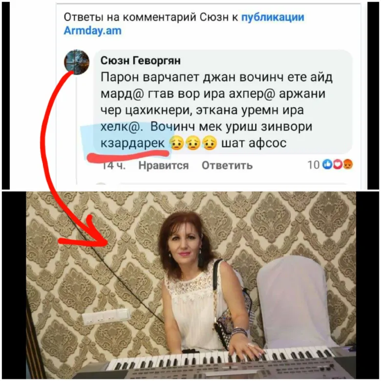 Сюзн, երբ դավաճան Նիկոլի պատճառով ձեր տանը ողբերգություն լինի` մարդ մահանա, կուռքիդ կհրավիրես ձեր տուն, սուփրա֊սեղան կփռես դեմը, լամբադա կպարեք իրար հետ, հետո էլ կտանես գերեզմանոց, որ իր պատճառով մահացածի գերեզմանը зардари իր բերած ծաղիկներով...