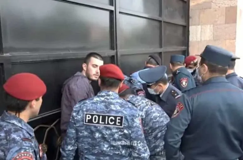 Երիտասարդներն իրենց շղթայել են կառավարության շենքի դարպասներից. Նրանցից մի քանիսին բերման ենթարկեցին (տեսանյութ)