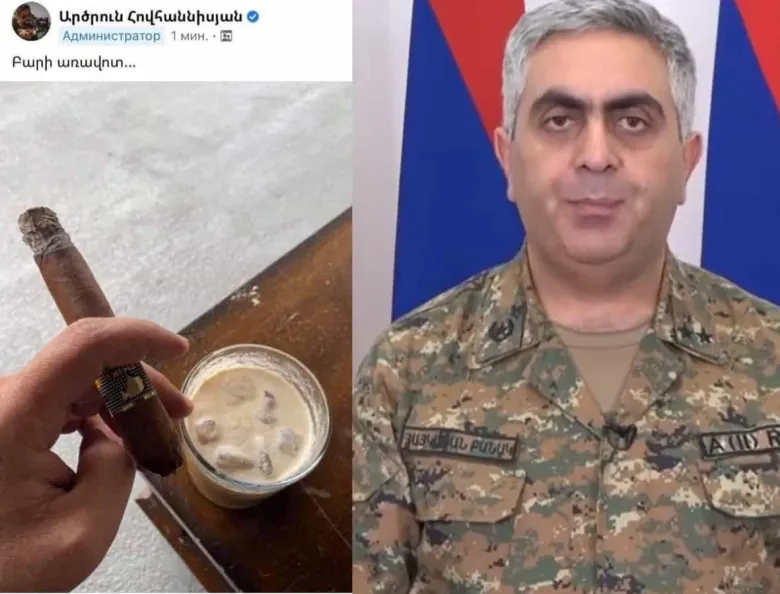Politik.am-ը գրում է․ Պատերազմի 44 օրերին հանրությանը ստով կերակրած և ստի մոնումենտ դարձած Արծրուն Հովհաննիսյանը ԱՄՆ-ում կյանք է վայելում: Քիչ առաջ նա ֆեյսբուքյան Cigar.am փակ խմբում հրապարակել է սիգարով լուսանկար և բարի լույս մաղթել բոլորին: