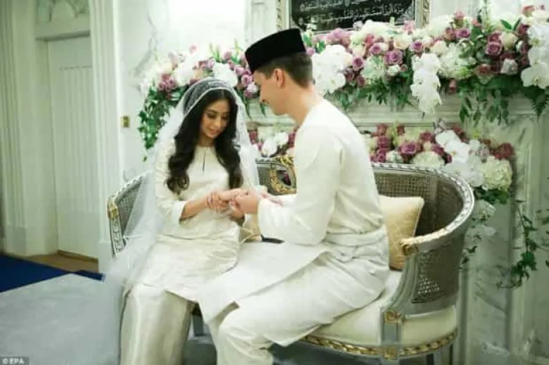 Հարսանիքն անցել է մալայզիական մահմեդականների ավանդույթների համաձայն՝ Ջոհոր Բարու թագավորական նստավայրում։ Արարողությանը ներկա էին միայն ընտանիքի անդամներն ու մտերիմ ընկերները։ Փեսացուն ավանդական մալայզիական սպիտակ հագուստով էր։ Զույգը համբուրել է ծնողների ու ազգականների ձեռքերը՝ որպես հարգանքի նշան, այնուհետեւ նրանք դուրս են եկել հյուրերի մոտ, որոնք թվով մոտ 1200 մարդ էին։