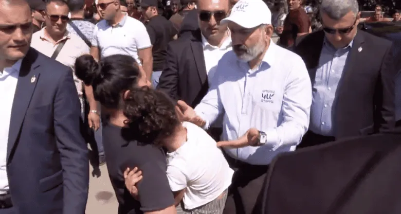 Իշխող ուժի ղեկավարը նկատեց, որ երեխան լացում է: Նա փորձեց լուսանկարվել երեխայի հետ, սակայն փոքրիկը հրաժարվեց: Փաշինյանը բավարարվեց համբուրելով: