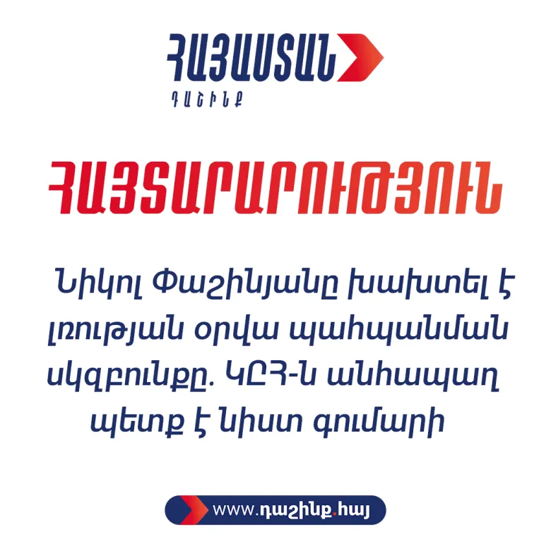 «Հայաստան» դաշինքի կենտրոնական շտաբի պաշտոնական ներկայացուցիչ Արամ Վարդևանյանի հայտարարությունը