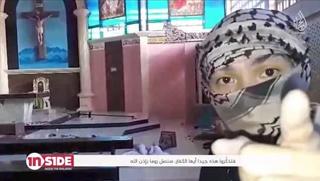 Նրանցից մեկը նայում է տեսախցիկին և անգլերեն ասում. «Հիշեք սա, գյավուրներ, մենք կլինենք Հռոմում, մենք կլինենք Հռոմում, ինշալլահ»: