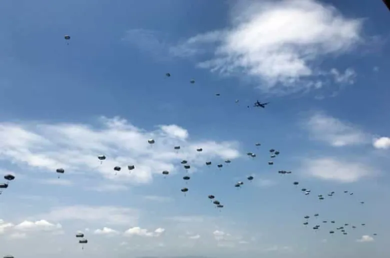 Ուսումնամարզական գործողություններին ներգրավվել է ամերիկյան ռազմատրանսպորտային 3 օդանավ: 150 զինվորական միաժամանակ պարաշյուտով թռիչքներ են կատարել: