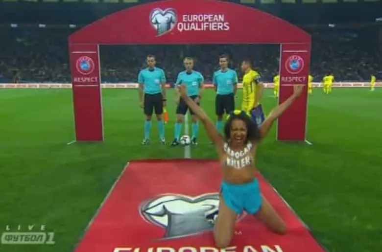 Femen-ի հայտնի սկանդալային ուկրաինուհի ակտիվիստները հերթական թոփլես-ակցիան են կազմակերպել, այս անգամ` Աշխարհի 2018թ. առաջնության Եվրոպայի գոտու որակավորման փուլի 7-րդ տուրի Ուկրաինա-Թուրքիա հանդիպման ժամանակ: