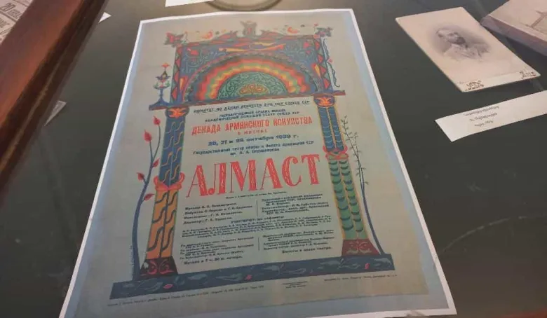 Ցուցադրված նյութերի շարքում տեղ էր գտել նաև «Այնտեղ, այնտեղ դեպ վեհ այն դաշտը» ստեղծագործության առաջին հրատարակությունը: Առաջին համաշխարհային պատերազմի տարիներին, երբ կովկասյան ճակատում մարտնչում էին հայկական կամավորական ջոկատները, ռուսաստանաբնակ հայ Ալեքսանդր Սպենդիարյանն անտարբեր չէր կարող մնալ նրանց ճակատագրին և որոշեց ինչ-որ կերպ օգտակար լինել հայ կամավորականներին, որոնք պետք է Սարդարապատի ճակատամարտը պսակեին հաղթանակով։ Սպենդիարյանն իր «Այնտեղ, այնտեղ դեպ վեհ այն դաշտը» ստեղծագործության տպագիր նոտաների վաճառքի ողջ հասույթը տրամադրեց հայ կամավորներին։ Նոտագրության շապիկն էլ նկարազարդեց Սպենդիարյանի մտերիմն ու ընկերը՝ Մարտիրոս Սարյանը։ «Այդ հանգամանքը առիթ ծառայեց մեր հանդիպման»,-հետագայում նշել է Սարյանը Սպենդիարյանի մասին իր հուշերում: