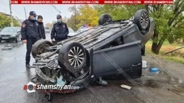 Կասկադյորական ավտովթար Երևանում. Toyota-ն բախվել է գազատար խողովակին, կոտրել այն և գլխիվայր հայտնվել ճանապարհի մեջտեղում