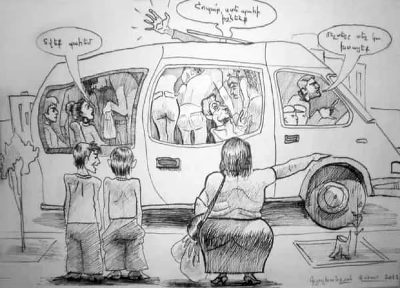Իսկ ի՞նչ կասեին Տիգրան Մեծը կամ Աշոտ Երկաթը տեսնելով միկրոավտոբուսում իրար վրա հենված մի քանի տակ ծալված ՀՀ հպարտ քաղաքացիներին: Ինչ կմտածեին այդ երթուղայիններում սրա նրա գրկում կամ ձեռքի տակ հայտնված կանանց եւ աղջիկների, նրանց ամուսինների, հայրերի եւ եղբայրների մասին: