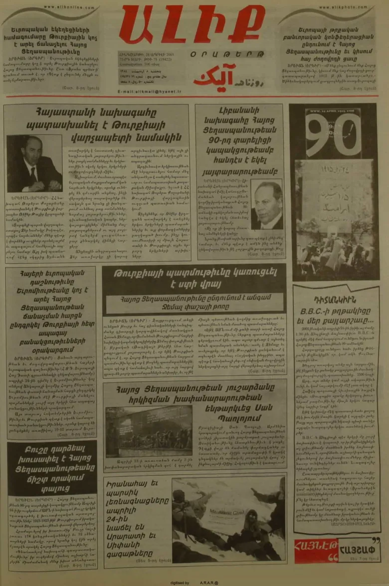 Դա նույնիսկ տպարգված է Թեհրանի «Ալիք» օրաթերթի 2005 թվականի ապրիլի 28-ի համարի առաջին էջում, հղում կատարելով «Երկիր» օրաթերթին: