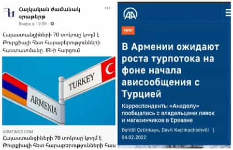 Սակայն հատկանշական է, որ Փաշինյանի «Հայկական ժամանակ»-ը և Էրդողանի ANADOLU-ն շարունակում են ուղիղ հակադիր և սինքրոն քարոզչություն իրականացնել «Երևանի և Անկարայի հարաբերությունների կարգավորման» կարևորության, եթե ոչ անխուսափելիության մասին։