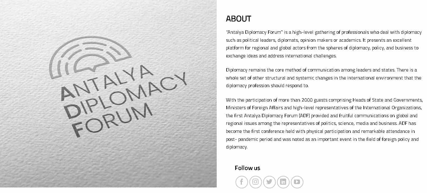 Նախ մի քանի խոսք բուն ֆորումի մասին։ Կազմակերպիչներն ասում են, որ Անթալիայի դիվանագիտական ֆորումը դիվանագիտությամբ զբաղվող մասնագետների հավաք է: