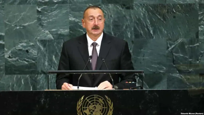 Ադրբեջանի նախագահ Իլհամ Ալիևը այսօր ելույթ ունենալով ՄԱԿ-ի Գլխավոր ասամբլեայի նստաշրջանում, ասել է, որ «ադրբեջանական տարածքների 20 տոկոսը ավելի քան 25 տարի գտնվում է Հայաստանի օկուպացիայի տակ»: Նրա խոսքերով՝ Հայաստանը անտեսում է միջազգային կազմակերպությունների, այդ թվում ՄԱԿ-ի Անվտանգության խորհրդի 4 բանաձևերը, որոնք պահանջում են հայկական զորքերը դուրս բերել «Ադրբեջանի օկուպացված շրջաններից»: «Երբեմն ՄԱԿ-ի ԱԽ-ի բանաձևերը կատարվում են մի քանի օրվա ընթացքում, մեր դեպքում դրանք 24 տարի չեն իրականացվում: Սա երկակի մոտեցում է, սա անընդունելի է»,- դժգոհել է նա: