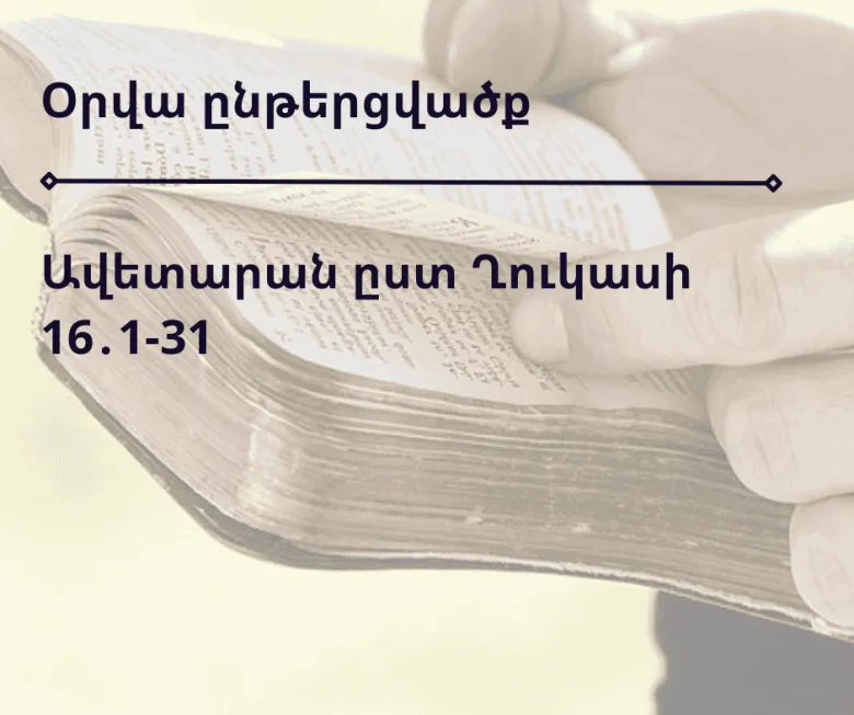 19 «Մի մեծահարուստ մարդ կար, որ բեհեզ ու ծիրանի էր հագնում և ամեն օր առատապես ուրախություն էր անում։ 20 Ղազարոս անունով մի աղքատ մարդ ընկած էր նրա դռան առաջ՝ վերքերով ծածկված։ 21 Եվ ցանկանում էր լցնել իր որովայնը այն փշրանքներով, որոնք թափվում էին մեծահարուստի սեղանից։ Եվ դեռ շներն էլ գալիս էին ու լիզում նրա վերքերը։ 22 Երբ աղքատը մեռավ, հրեշտակները նրան տարան Աբրահամի գոգը. մեծահարուստն էլ մեռավ և թաղվեց։ 23 Եվ դժոխքում, մինչ տանջանքների մեջ էր, բարձրացրեց իր աչքերը, հեռվից տեսավ Աբրահամին և Ղազարոսին էլ՝ նրա գրկում հանգչելիս։ 24 Եվ նա աղաղակեց ու ասաց. “Հա՛յր Աբրահամ, ողորմի՛ր ինձ և ուղարկի՛ր Ղազարոսին, որ իր մատի ծայրը թրջի ջրով և զովացնի լեզուս, որովհետև այս տապից պապակվում եմ”։ 25 Եվ Աբրահամը նրան ասաց. “Որդյա՛կ, հիշի՛ր, որ դու ստացար քո բարիքներն այնտեղ, քո կյանքի ընթացքում, իսկ Ղազարոսն էլ՝ չարչարանքները. այժմ սա այստեղ մխիթարվում է, իսկ դու այդտեղ պապակվում ես։ 26 Եվ այս բոլորից բացի, մեծ վիհ կա մեր և ձեր միջև. եթե ուզենան այստեղից ձեզ մոտ անցնել, չեն կարողանա. ոչ էլ այդտեղից մեկը կարող է մեզ մոտ անցնել”։ 27 Մեծահարուստն ասաց. “Արդ, աղաչում եմ քեզ, հա՛յր, որ Ղազարոսին ուղարկես իմ հոր տունը, 28 որտեղ ես հինգ եղբայրներ ունեմ, որպեսզի նրանց վկայություն տա, որ նրանք էլ չգան տանջանքների այս վայրը”։ 29 Աբրահամն ասաց. “Նրանք ունեն Մովսեսին և մարգարեներին, թող նրա՛նց լսեն”։ 30 Եվ նա ասաց. “Ո՛չ, հա՛յր Աբրահամ. բայց եթե մեռելներից մեկը նրանց մոտ գնա, նրանք կապաշխարեն”։ 31 Եվ Աբրահամը նրան ասաց. “Եթե Մովսեսին և մարգարեներին չեն լսում, մեռելներից մեկն էլ եթե հարություն առնի, չպիտի համոզվեն”»։