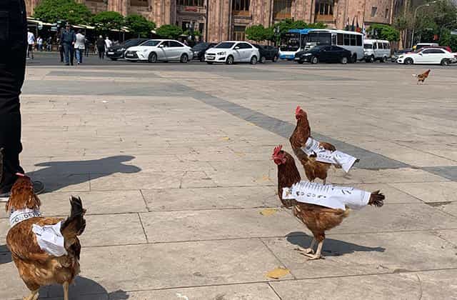 Փաշինյանի ծաղրանկարով հավեր՝ Հանրապետության հրապարակում
