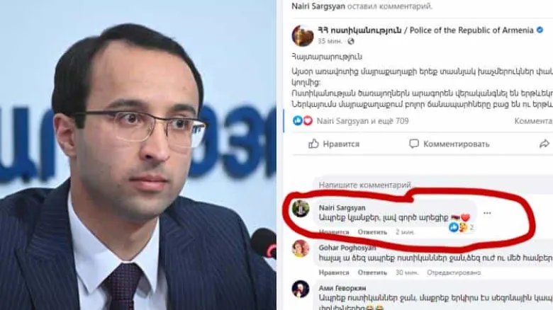 Ոստիկանության այս հաղորդագրության տակ նրանց գովերգող մեկնաբանություն է թողել Նիկոլ Փաշինյանի նախկին օգնական Նաիրի Սարգսյանը, որի եղբայրը՝ Հայկ Սարգսյանը, ՔՊ-ից պատգամավոր է, գրում է «Հրապարակը»: