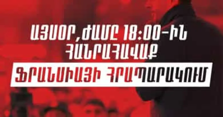 «Դիմադրություն» շարժումն այսօր 18։00-ին Ֆրանսիայի հրապարակում համահայկական մեծ հանրահավաք է հրավիրում։