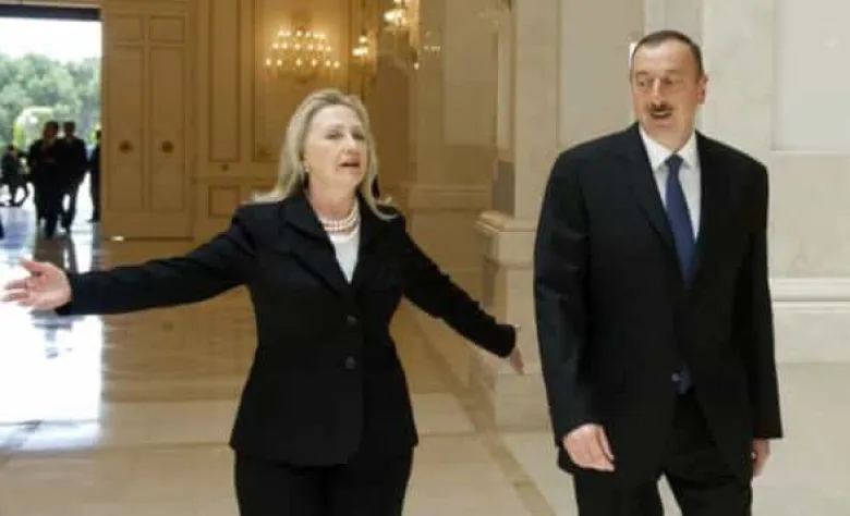 2013թ. պետքարտուղար Քլինթոնին Ալիեւը նվիրել է ադրբեջանական խալի, որը կոչվում է «Ադրբեջանի Շուշի», թեյի արծաթե ոսկեջրած բաժակներ եւ «Ադրբեջանը տոլերանտության երկիր» գիրքը։ Դրանից զատ նվիրել է նաեւ Հիլարի Քլինթոնի պատկերով կտավը, հավանաբար ձեռք բերված Բաքվի վերնիսաժից, քանի որ դրա արժեքը 500 դոլար է։