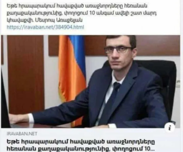 Առավոտյան Լուսավորի «մտքի գիգանտ» Գեւորգ Գորգիսյանը (Էդմոնն էլ Հ1-ի պավիլիոնից տուն չի գնում) հայտարարել էր, թե բա՝ դուք ընտրության չմասնակցեիք, հիմա ես պատգամավոր կլինեի, հիմա էլ Նիկոլի նախկին նախարար, մեր օրերում ընդդիմություն աշխատող ոմն Մեսրոպ Առաքելյան է նեղսրտում, թե բա հրապարակից դուք գնացեք, մարդիկ կշատանան: