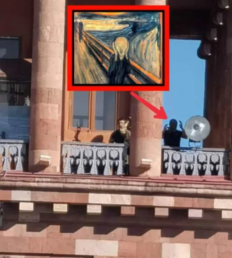 Էս կարո՞ղ ա Նիկոլի անվտանգության պետ Սարգիս Հովհաննիսյանն ա Էդվարդ Մունկի "Ճիչը" դեմքով կանգնել կառավարության պատշգամբում։ Հո, բան-ման չի՞ եղել, գեներալ։