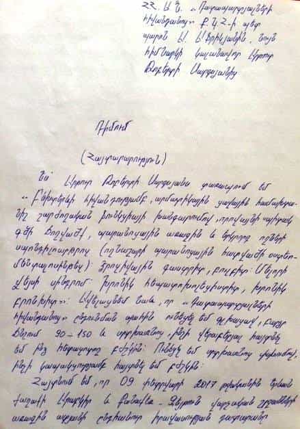 Արթուր Սարգսյանի հայտարարությունը իր նկատմամբ կիրառված կալանքի կապակցությամբ