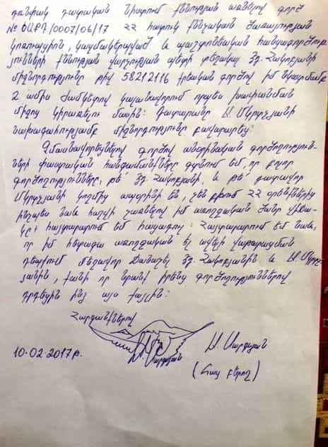 Հիշեցնենք, որ քրեական գործի նախաքննությունն իրականացնող քննիչի կողմից միջնորդություն է ներկայացվել Արաբկիր և Քանաքեռ-Զեյթուն վարչական շրջանների ընդհանուր իրավասության դատարան` Արթուր Սարգսյանի նկատմամբ կալանավորումը որպես խափանման միջոց կիրառելու վերաբերյալ: