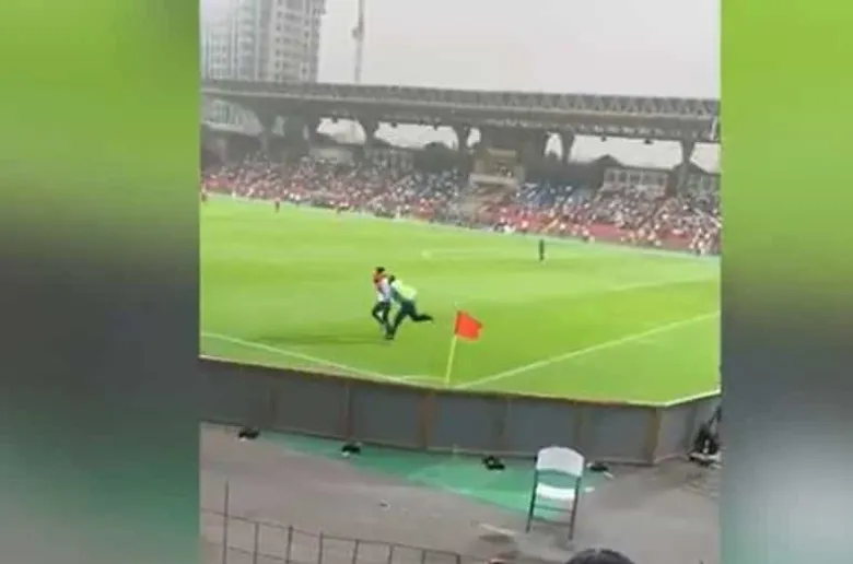 Մարզադաշտում գտնվող հանդիսատեսը սկսեց վանկարկել «Առանց Նիկոլ Հայաստան»: Անվտանգության աշխատակիցները նրան հեռացրին մարզադաշտից: