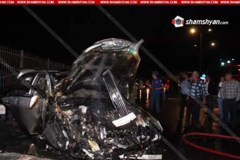 Պարզվել է, որ «Nissan Teana» մակնիշի 01 CL 707 պետհամարանիշով ավտոմեքենան դուրս է եկել երթեւեկելի գոտուց եւ բախվել պատին, ինչի հետեւանքով խոշոր հրդեհ է բռնկվել: