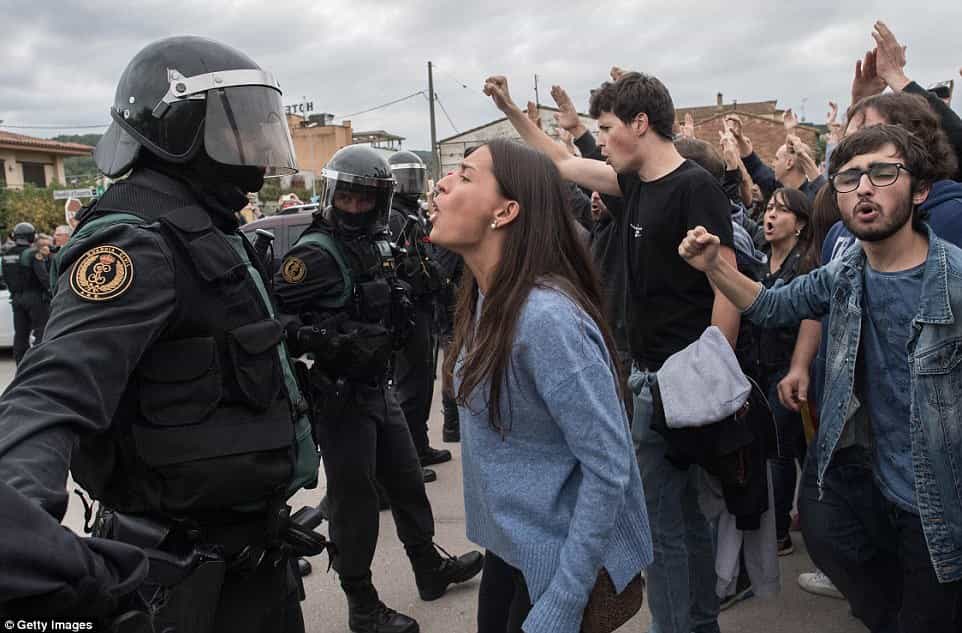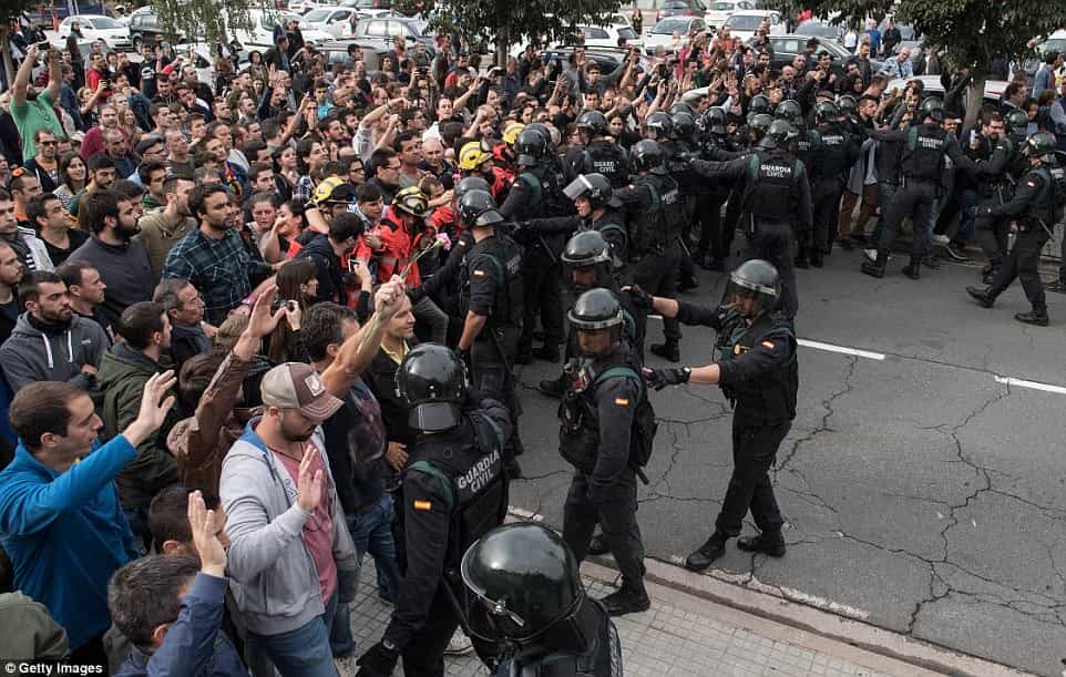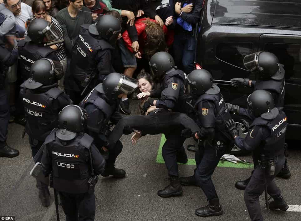 Ընտրողներից շատերին պարզապես թույլ չեն տվել քվեաթերթիկը տուփի մեջ գցել: Ականատեսների պատմելով՝ իսպանացի ոստիկանները կացիններով ջարդել են դռներն ու ռետինե փամփուշտներով կրակել մարդկանց ուղղությամբ: Բացի այդ, նրանք բռնի կերպով ընտրողներին քարշ են տվել ընտրատեղամասերից ու նրանց հարվածելով գետնին գցել: