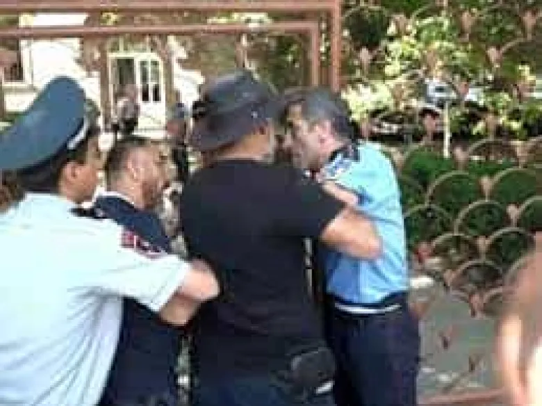 Փաշինյանի դեմ բողոքի քննությունից հետո դատարանի բակում իրավիճակը լարվեց․ կարգադրիչը եւ զոհվածի հարազատը քաշքշեցին իրար