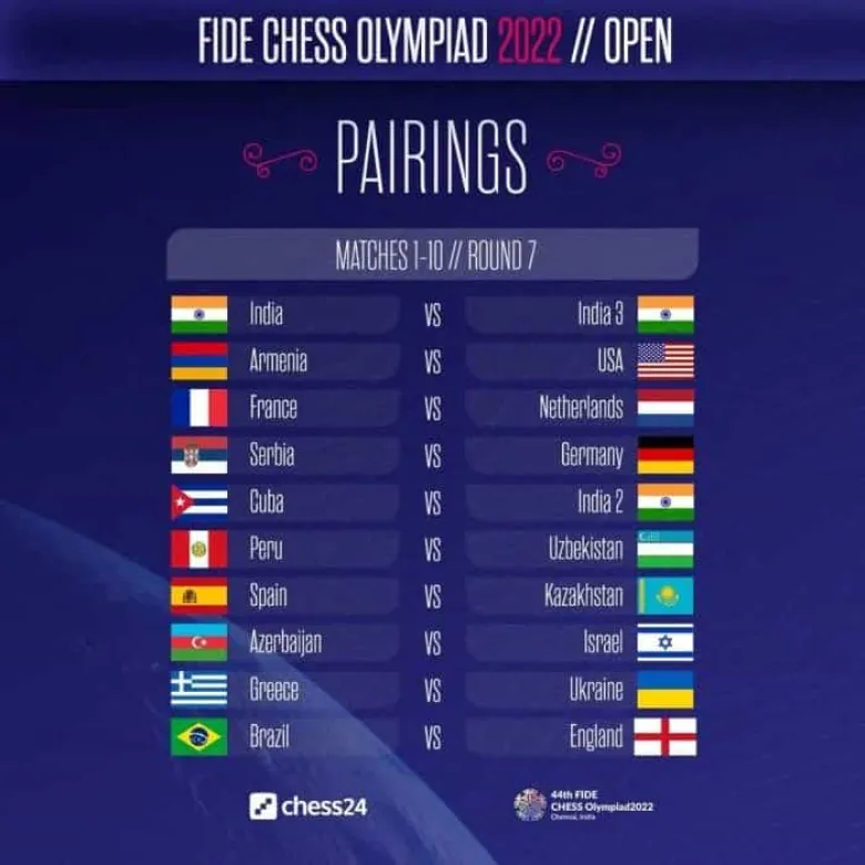 Հնդկաստանի Չենայ քաղաքում անցկացվող շախմատի Համաշխարհային օլիմպիադայի 7-րդ տուրում Հայաստանի հավաքականը կմրցի ԱՄՆ-ի թիմի հետ, որի կազմում առաջին անգամ հանդես է գալիս Հայաստանի թիմի նախկին առաջատար, Օլիմպիադայի եռակի չեմպիոն Լեւոն Արոնյանը։