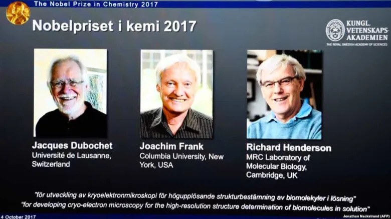 Քիմիայի բնագավառում 2017 թվականի Նոբելյան մրցանակին արժանացան Ժակ Դյուբոշեն՝ Շվեյցարիայից, Գերմանիայում ծնված ԱՄՆ քաղաքացի Ջոաքիմ Ֆրանկը և Ռիչարդ Հենդերսոնը՝ Մեծ Բրիտանիայից: Երեք գիտնականներին հեղինակավոր մրցանակը շնորհվեց կրիո-էլեկտրոնային մանրադիտակը մշակելու համար, այսօր հայտարարել է Շվեդիայի գիտությունների թագավորական ակադեմիան:
