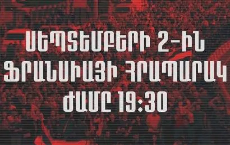 «Սեպտեմբերի 2-ին՝ ժամը 19:30, Ֆրանսիայի հրապարակում տեղի է ունենալու հանրահավաք:
