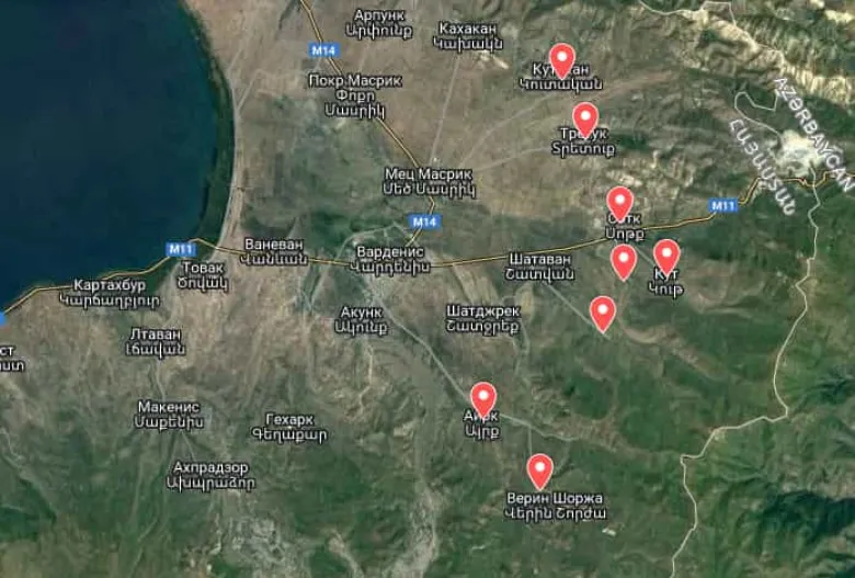 Գեղարքունիքի մարզում՝ Կուտական, Տրետուք, Սոթք, Կութ, Ազատ, Նորաբակ, Այրք, Վերին Շորժա։