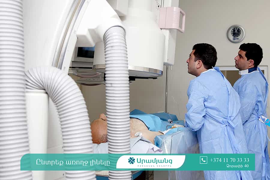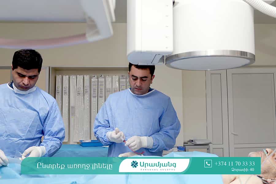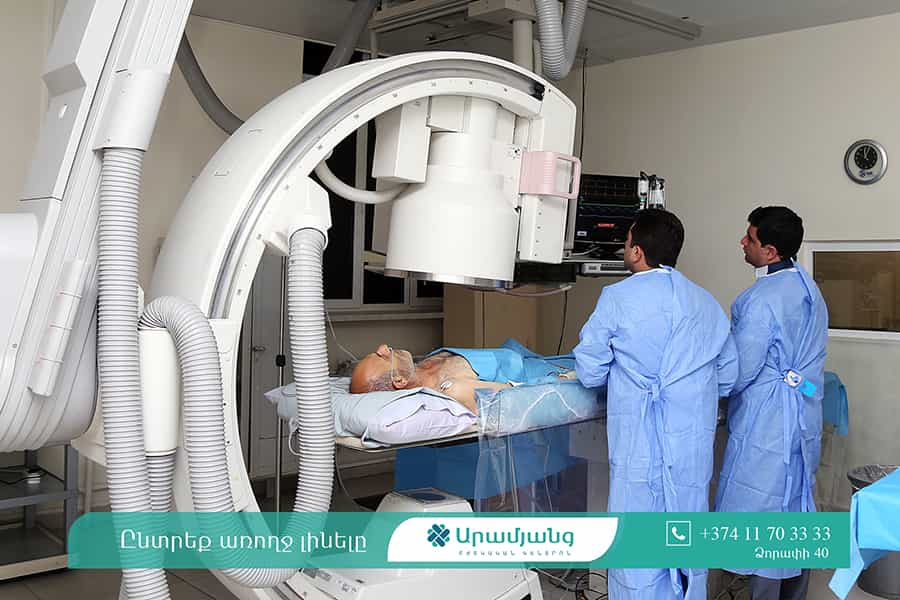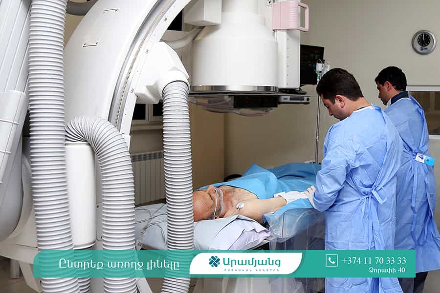«Արամյանց» ԲԿ ընդհանուր և ինվազիվ սրտաբանական բաժանմունքը զբաղվում է սրտաբանական պաթոլոգիաների թերապևտիկ բուժմամբ և ներանոթային միջամտություններով: Բաժանմունքը վերազինված է նորագույն տեխնոլոգիաներով ու գործիքակազմով, ինչը ապահովում է բուժման բարձր որակ և արդյունավետություն: Իրականացվում է և՛ պլանային, և՛ անհետաձգելի շտապ օգնությամբ ընդունված հիվանդների բուժում: «Բաժանմունքը նորից սկսել է գործել 2020 թ. նոյեմբերից: Այս կարճատև ընթացքում մեր թիմին հաջողվել է շտապ օգնությամբ իրենց դիմած շատ ծանր հիվանդների վերադարձնել կյանք ու առողջացնել»,-ասում է բաժանմունքի ղեկավար Նարեկ Աթոյանը: Բոքսը և հիվանդասենյակները վերանորոգված են, յուրաքանչյուրում տեղադրված են սրտի աշխատանքի հսկողության նորագույն մոնիտորներ, որոնք 24 ժամ հսկում են սրտի աշխատանքը, պացիենտի օրգանիզի թթվածնային հագեցվածությունը (սատուրացիան), զարկերակային ճնշումը, անգամ մարմնի ջերմաստիճանը: Հիվանդասենյակներում առկա են ավտոմատ պերֆուզամատներ՝ դեղորայքի՝ երկարատև, ըստ չափաբաժնի և վերահսկելի ներարկման համար: Այստեղ հավաքվել է երիտասարդ, խանդավառ բժիշկների թիմ, որը զբաղվում է սիրտանոթային բոլոր պաթոլոգիաների բուժմամբ՝ համապատասխան միջազգային չափանիշներին ու ուղեցույցներին: Արամյանց» ԲԿ ընդհանուր և ինվազիվ սրտաբանական բաժանմունքում իրականացվում են բոլոր անհրաժեշտ գործիքային հետազոտությունները․ էլեկտրասրտագրություն, էխոսրտագրություն, հոլթեր մոնիթորինգ, թրեդմիլ թեստ, կորոնարոգրաֆիա, շունտոգրաֆիա։ Դրանք օգնում են ճիշտ ախտորոշել ու բուժել սրտամկանի սուր ինֆարկտը,սրտի քրոնիկ իշեմիկ հիվանդությունը, սրտային քրոնիկ անբավարարություն և քրոնիկ անբավարարության սրացումը, զարկերակի գերճնշումը, առիթմիան։ Առավել հաճախ բաժանմունքն ընդունում է սրտամկանի սուր ինֆարկտով պացիենտներ․ «Օպերատիվ կերպով անհրաժեշտ հետազոտությունները կատարելուց հետո հիվանդին անմիջապես տեղափոխում ենք կաթետերիզացիոն լաբորատորիա (ներանոթային միջամտական սենյակ): Իրականացվում է ախտորոշիչ և տրանսկաթետերային միջամտություն: Ձեռքի ճաճանչային զարկերակից (բացառիկ դեպքերում նաև ազդրային զարկերակից, եթե բազկի անոթը խնդիր ունի, ոլորված է և այլն) տեղային անզգայացմամբ պունկցիա է արվում և կատետրը հասնում է սիրտը սնուցող ցողունային անոթներ, յոդի հիմքով հատուկ կոնտրաստ նյութ է ներարկվում, հետազոտվում են անոթների պատերը, հայտնաբերվում է ախտահարված անոթը: Դրանից հետո փոխվում են գործիքները, հատուկ ուղղորդիչ լարով վիրաբույժը նորից մտնում է անոթի մեջ և արյան հոսքը վերականգնելու համար կատարում բալոնային դիլատացիա, որից հետո արդեն՝ ստենտավորում: Միջամտությունից հետո հիվանդը միջինը 3 օրով տեղափոխվում է վերակենդանացման բաժին՝ ինտենսիվ հսկողության տակ լինելու և դեղորայքային բուժում ստանալու համար»։ Բժիշկն անչափ կարևորում է ախտանշանների ի հայտ գալուն պես հնարավորինս վաղ մասնագետին դիմելը։ Սրտամկանի սուր ինֆարկտին նախորդող ախտանշաններն են հետկրծոսկրային շրջանում՝ միջթիակային շրջանում սեղմոց, բութ ցավ կամ այրոց, դեպի ձախ ձեռք կամ երկու ձեռքերը ճառագայթող ցավ, ձախ ձեռքի կամ ձեռքերի թմրածություն։ «Եթե այս ախտանշանները արտահայտվում են սուր ու չեն դադարում երկար ժամանակ, ուրեմն պետք է շտապ դիմել սրտաբանական բաժանմունք. ամենայն հավանականությամբ արդեն առկա է անոթի լրիվ խցանում, և պահանջվում է շտապ վիրահատական միջամտություն: Իսկ եթե ցավերը պարբերական բնույթ են կրում ու արտահայտվում են ծանր ֆիզիկական աշխատանքի դեպքում, ուրեմն առկա է անոթի նեղացում, և սուր վիճակից խուսափելու համար, պետք է հնարավորինս վաղ դի