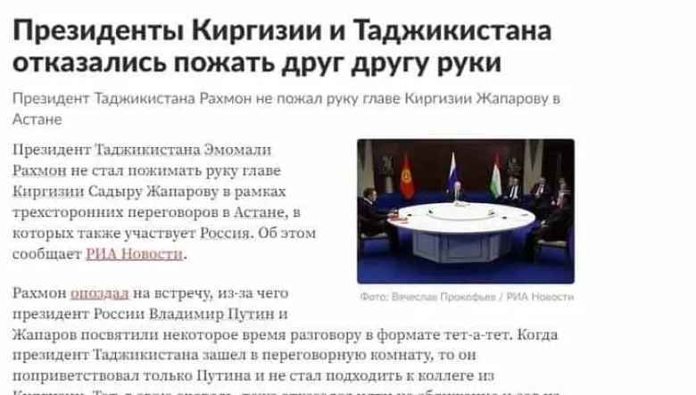 Ղրղզստանի ու Տաջիսկստանի սահմանին շաբաթներ առաջ բախում էր տեղի ունեցել, որ ընթացքում երկու կողմն էլ մի քանի տասնյակ զոհ էին տվել: Իրենց ժողովրդի զավակների կյանքերը գնահատող նախագահները հանդիպելիս իրար չեն բարեւել: Ու այս ֆոնին հիշում եմ, որ բգի բոլշեւիկ Փաշինյանը 4000 զոհի ֆոնին Ալիեւին ժպտադեմ բարեւում էր ու հետն էլ նստում էր հացի սեղանի շուրջ: