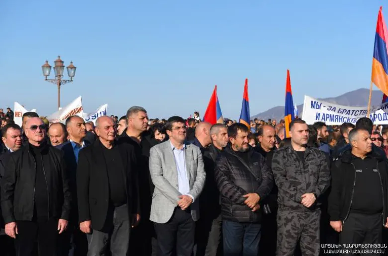 Արցախի Հանրապետության նախագահ Արայիկ Հարությունյանն ԱՀ երկրորդ ու երրորդ նախագահներ Արկադի Ղուկասյանի և Բակո Սահակյանի հետ հոկտեմբերի 30-ին մասնակցել է Ստեփանակերտի Վերածննդի հրապարակում կազմակերպված հանրահավաքին: