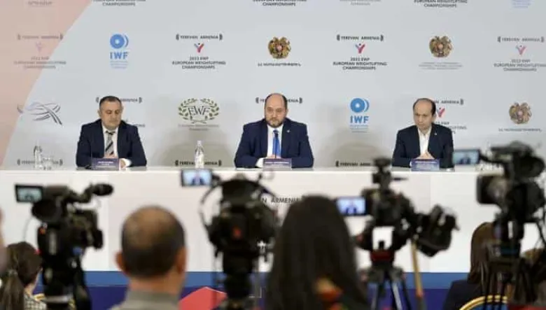 Ի սկզբանե բանախոսների համար նախատեսված սեղանին դրված էին այն մարդկանց անունները, որոնք պետք է մասնակցեին մամուլի ասուլիսին: Ի սկզբանե դրված էին վարչապետի աշխատակազմի ղեկավար Արայիկ Հարությունյանի, Եվրոպայի ծանրամարտի ֆեդերացիայի նախագահ Անտոնիո Կոնֆլիտտի, Կրթության, գիտության, մշակույթի եւ սպորտի փոխնախարար Կարեն Գիլոյանի եւ «Հայաստանի ծանրամարտի ֆեդերացիա» ՀԿ նախագահ Հրաչյա Ռոստոմյանի անունները: