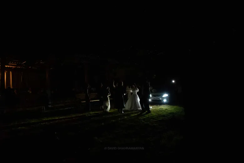 Արցախի տեղեկատվական շտաբի լուսանկարիչ Դավիթ Ղահրամանյանը իր ֆեյսբուքյան էջում լուսանկարներ է հրապարակել ու գրել. «Հարսանիք՝ շրջափակված Արցախում: Էլեկտրականության հովհարային անջատման ժամ»: