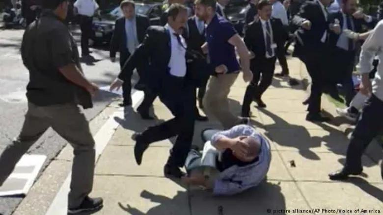 Նշենք, որ 2017-ի մայիսին Էրդողանի վաշինգտոնյան այցի ժամանակ Էրդողանի թիկնապահները հարձակվել էին նրա այցի դեմ բողոքի ակցիա իրականացնող քրդերի վրա եւ ծեծի ենթարկել։ Այդ դեպքից հետո սկսված հետաքննության արդյունքում Էրդողանի թիկնապահների դեմ գործեր են հարուցվել եւ ձերբակալման որոշումներ կայացվել։ Թիկնապահներից երկուսն այս պահին ԱՄՆ-ոըմ գտնվում են կալանքի տակ։