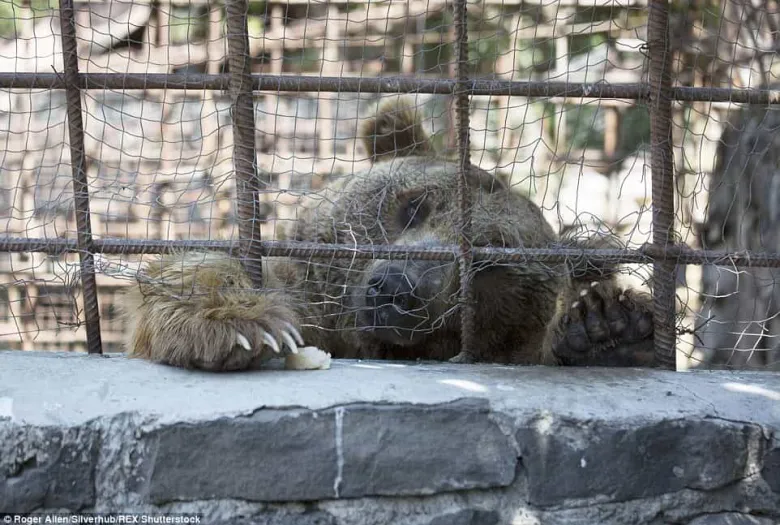 Ըստ Daily Mail-ի` արջի վանդակն այնպես է կառուցված, որ մարդկանց հետ շփումը գրեթե բացառված է, և կենդանիներին մնում է միայն հույսով սպասել, թե ով կարող է սնունդ տալ իրենց: