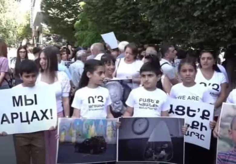 ՄԱԿ-ի գրասենյակի մոտ հավաքվել են հադրութցի երեխաներ, ովքեր 2020 թվականի 44-օրյա պատերազմից հետո տեղափոխվել են Հայաստան։ Նրանք ձեռքներին պահել են շրջափակված Արցախում ապրող երեխաների, նրանց առօրյան պատմող լուսանկաներ, իսկ շապիկներն գրված է՝ «Ոչ Արցախի շրջափակմանը», «Մենք Արցախ ենք», «Բացեք կյանքի ճանապարհը»։