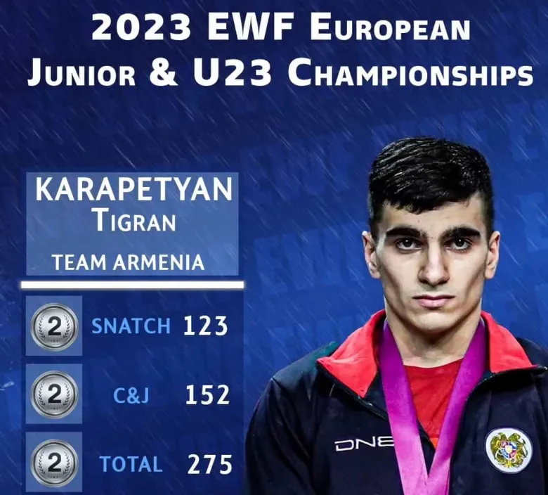 Մ20 տարեկանների պայքարում Հայաստանի ներկայացուցիչ, 67 կգ քաշային Տիգրան Կարապետյանը երկամարտի 275 կգ արդյունքով (123+152) դարձել է արծաթե մեդալակիր: Պոկում և հրում վարժություններում ևս Կարապետյանն արժանացել է փոքր արծաթե մեդալներին: