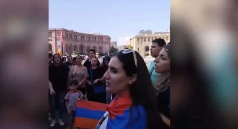 Տիգրան Մեծի պողոտան փակած ցուցարարները երգում են Հայաստանի հիմնը