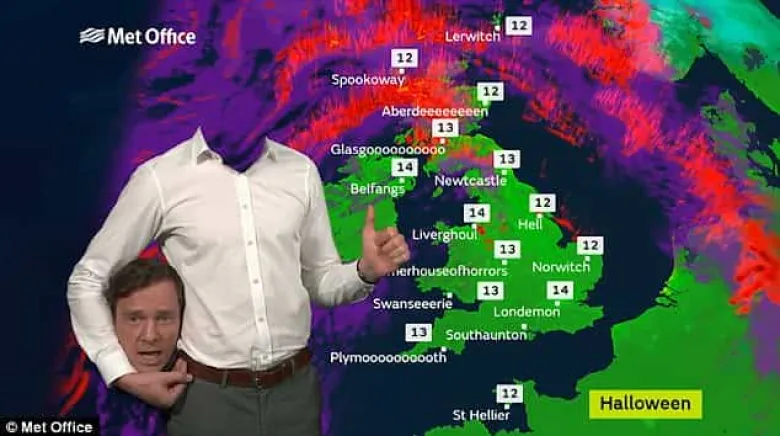Մեծ Բրիտանիայում եղանակի տեսության հաղորդավարը Բոլոր սրբերի տոնի կամ Հելոուինի առթիվ որոշել է եթեր մտնել յուրահատուկ տեսքով՝ «առանց գլխի»: